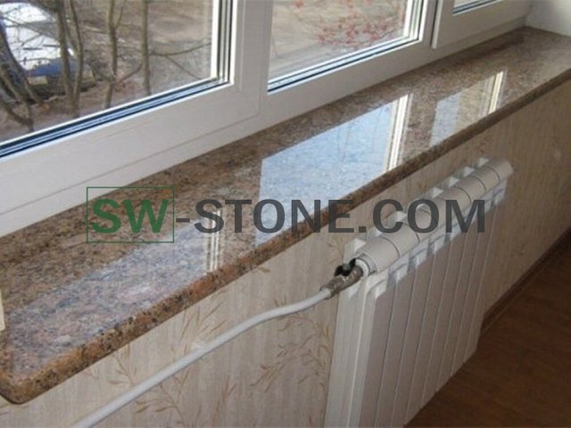 Кстати, если вы решились заказать подоконник из гранита, подумайте также об отделке гранитом откосов. Тогда ваше окно будет выглядеть целостным ансамблем. Кроме того, такое решение в несколько раз увеличит срок службы окон.