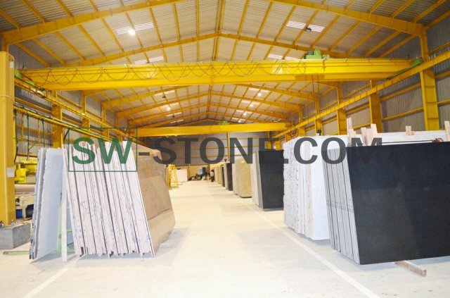 Зачастую поверхность слэба делают полированной уже в процессе производства, но в некоторых случаях (например, для наружных ступеней) необходимы слэбы с пиленной структурой. Такая фактура делает поверхность противоскользящей.